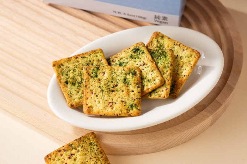 特色: 選用花蓮深海滸苔與台灣紅藜,結合福義軒烘焙技術,打造香酥脆口的滸苔蘇打餅。無防腐劑與人工添加物,少添加更安心。風味鹹香獨特,是搭配茶點的好選擇。