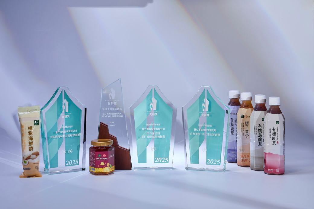 里仁以台灣有機辣椒、高雄有機鳳梨與宜蘭有機金桔透過天然發酵熟成的「發酵鳳梨辣椒醬」,榮獲2025「食創獎」的「年度十大新品」,並與里仁「植物海鮮漿」共同獲「食品創新」肯定;「山⽔茶境:⾥仁即飲茶系列」則榮獲「設計創新」一星獎榮譽。