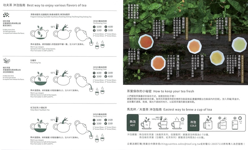 食/使用方式有機轉型期精選紅: 置茶/水量:茶葉置泡茶器具容量之 1/2。沖泡水溫:80-85°C。沖泡時間:第 1/2/3/4 泡時間依序為 30/35/35/35 秒,依個人口味濃淡可自行調整。有機轉型期精選包種茶:置茶/水量:茶葉置泡茶器具容量之 1/2。沖泡水溫 :開水煮滾 90°C以上。沖泡時間 :第 1/2/3/4 泡時間依序為 40/30/30/40 秒,依個人口味濃淡可自行調整。