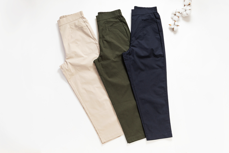 | 有機棉 × 彈性纖維 × 鳳梨纖維 | 90%有機棉 + 5%彈性纖維 + 5%鳳梨纖維,布料透氣有延展力。 | 柔軟 × 透氣 × 彈性 | 🔸 女七分褲 🔸 女束口褲 |