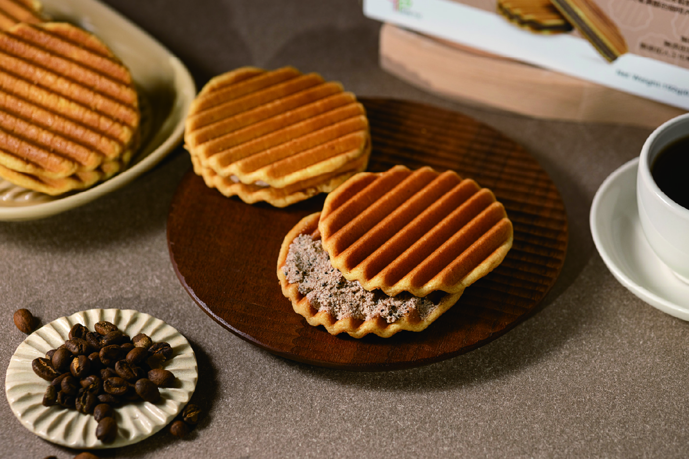 選用本土小麥粉與米穀粉製作出酥脆的波浪煎餅,內餡採用公平貿易雨林咖啡粉。外皮波浪酥脆口感及飽滿咖啡餡,可以作為午後點心或解饞零嘴。
