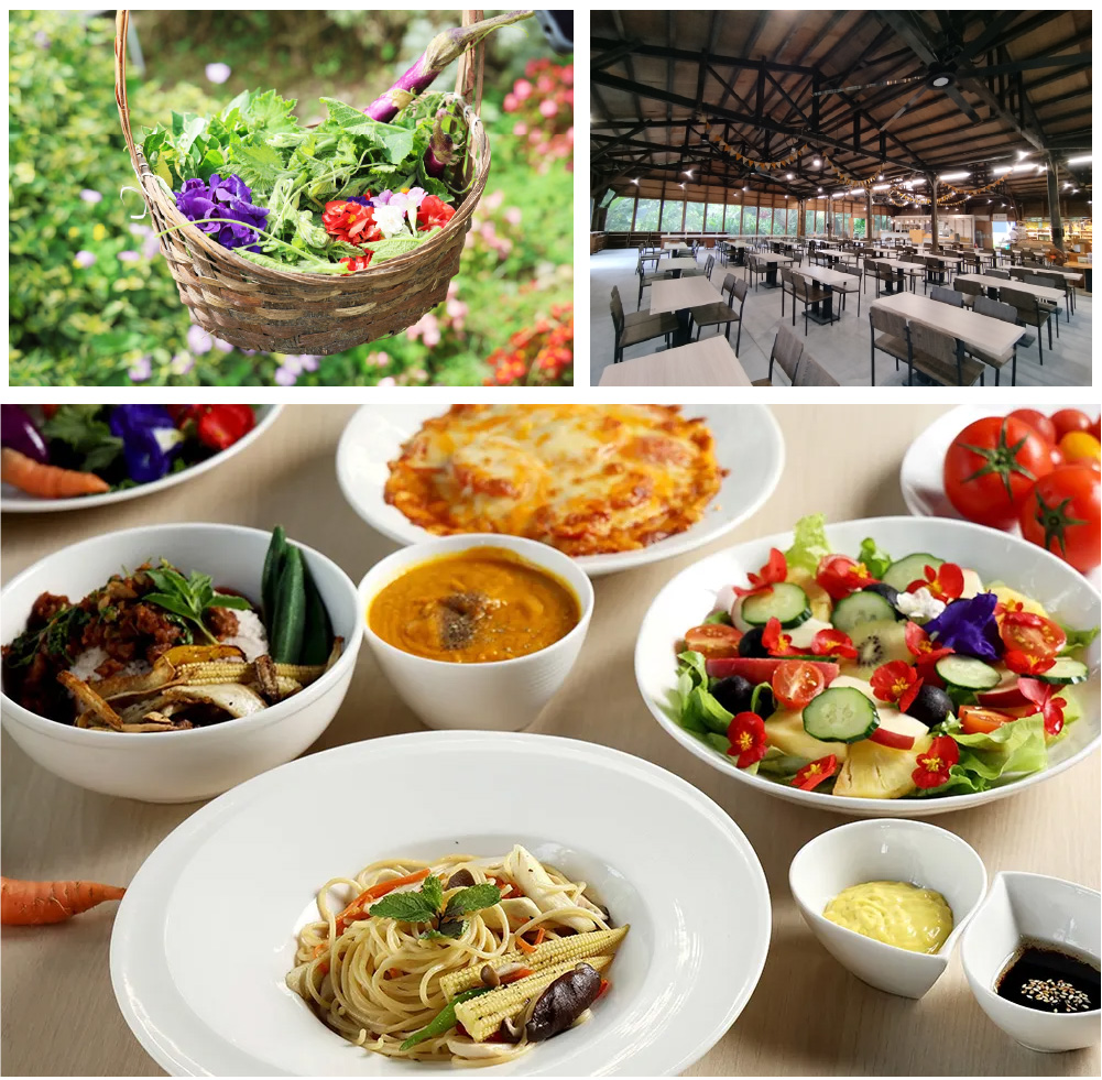 莊園附設的「農莊餐廳」延續無農藥、無化肥的有機農理念,供應有機農食餐點,既保留天然食材的營養,也守護了你我的健康。從產地到餐桌,用在地新鮮的有機農作時蔬,精心烹調出桌上的美食饗宴。餐廳周遭是美不勝收的有機景觀植栽,讓你的味蕾與視覺同步進行一場莊園級的大自然享受。
