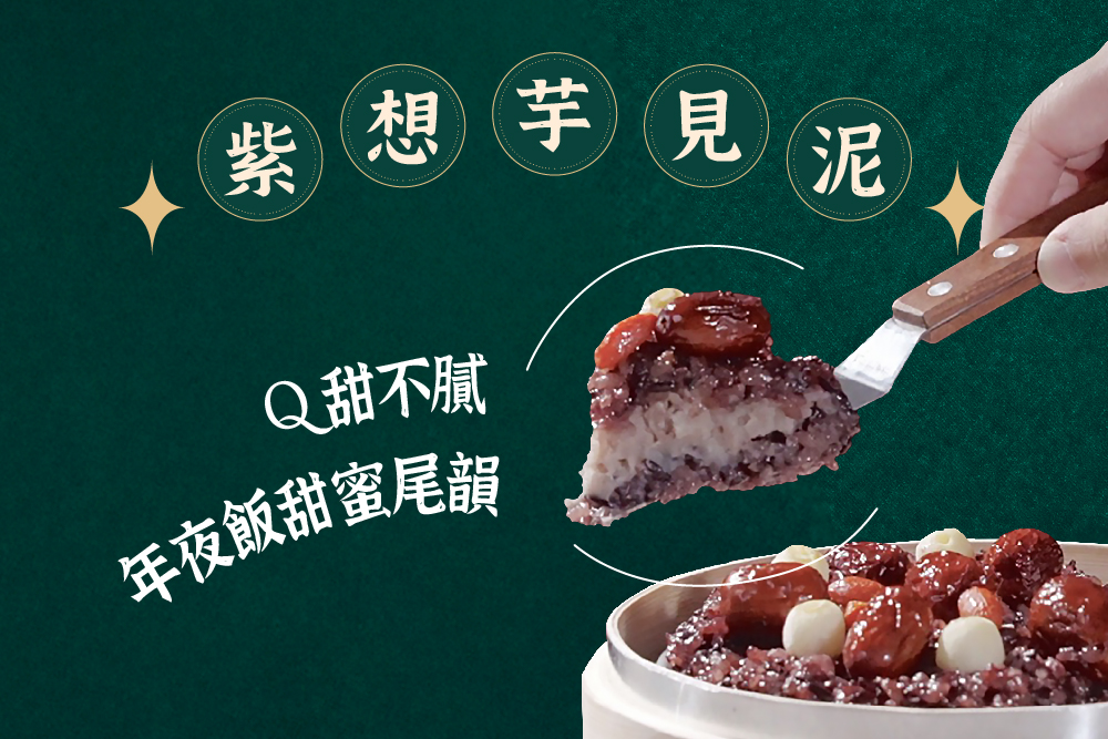 嚴選台灣本土黑糯米,搭配不使用農藥及化學肥料的圓糯米。內餡夾入綿密芋泥,佐以紅棗、蓮子、枸杞。無添加人工色素與防腐劑。口感軟糯Q彈,純素可食。電鍋蒸熱即食,象徵紫氣東來的吉祥甜點。看更多 APP點這裡