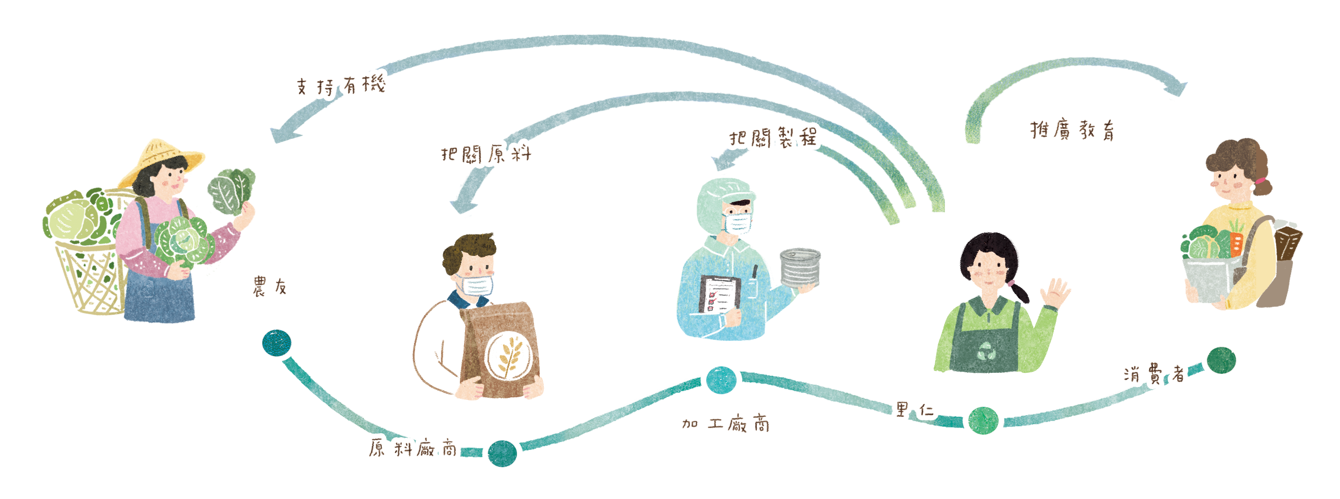 推廣有機產品、與農友契作,只是里仁支持有機的一部分。陪伴農友從不施農藥化肥到通過有機驗證,我們相信最實在的支持,是和農友一起走過好與壞。