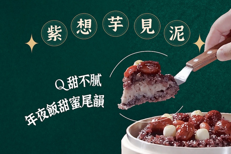 嚴選台灣本土黑糯米,搭配不使用農藥及化學肥料的圓糯米。內餡夾入綿密芋泥,佐以紅棗、蓮子、枸杞。無添加人工色素與防腐劑。口感軟糯Q彈,純素可食。電鍋蒸熱即食,象徵紫氣東來的吉祥甜點。看更多 APP點這裡