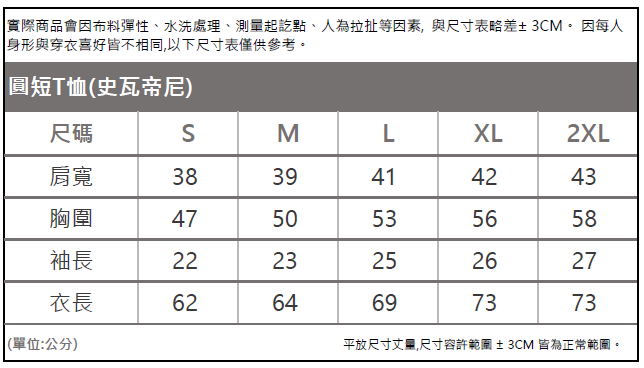 規格描述S-2XL