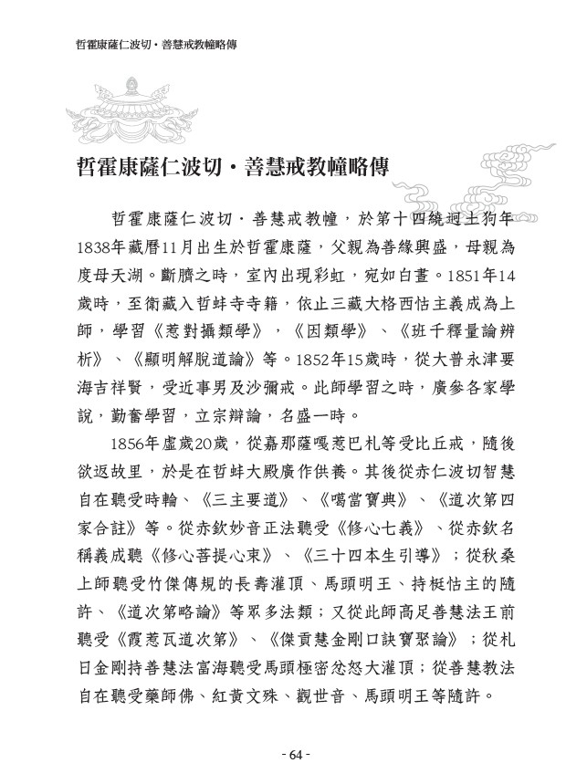 《恩德無比遍主輪怙依怙遍持林金剛持跟前於甘丹寺東頂大殿賜與〈道次略義證道歌甚深引導〉時之筆記》