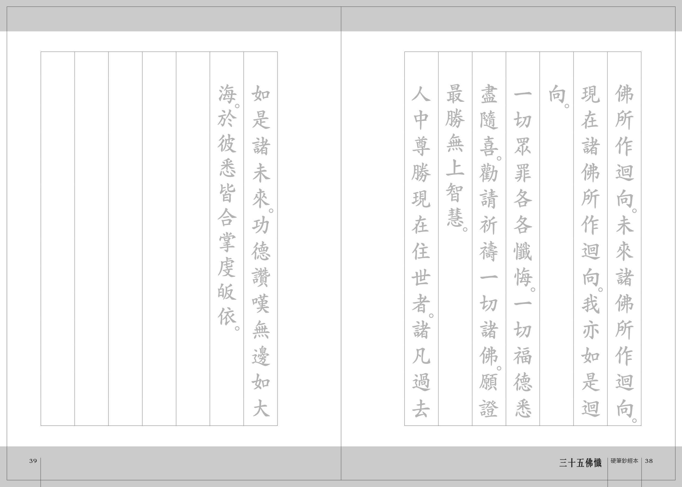 值此福智文十周年之際,特恭印《三十五佛硬筆鈔經本》,期與廣大有緣朋友,在淨罪集資修行路上共勉。