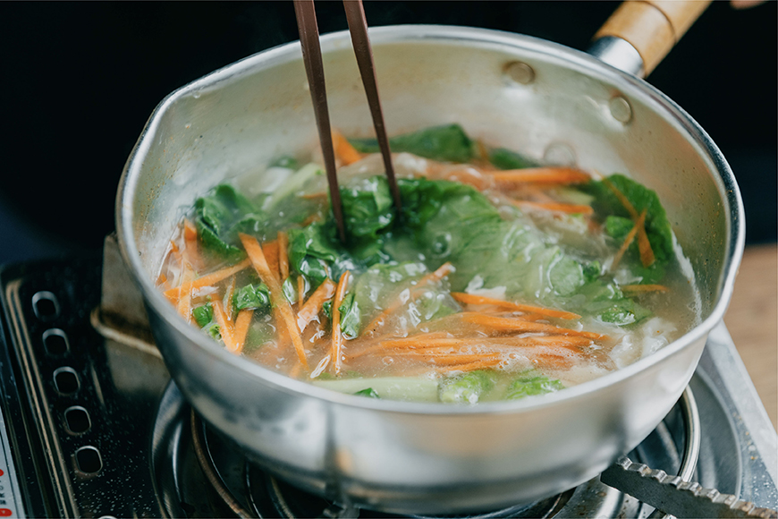 • 煮麵湯可放入枸杞跟白菜,最後再加點麻油即可變成養身湯品。